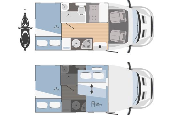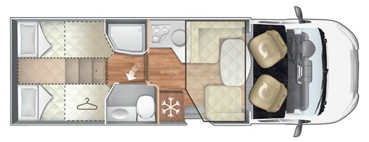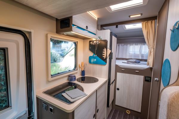 • 4 miejsc do spania, 2 - osobowe łóżko z tyłu pojazdu