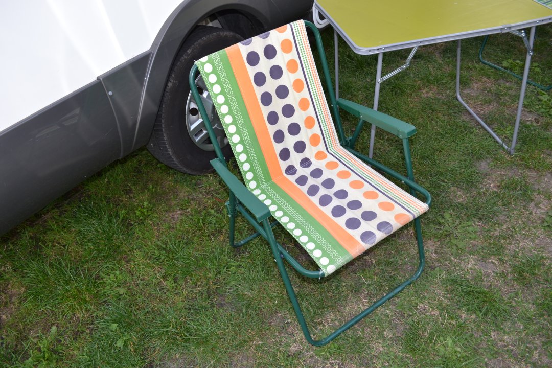 Rozkładane krzesło turystyczne z regulacją wysokośći oparcia w 5 pozycjach z zagłówkiem 30 zł.